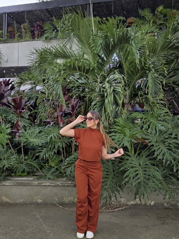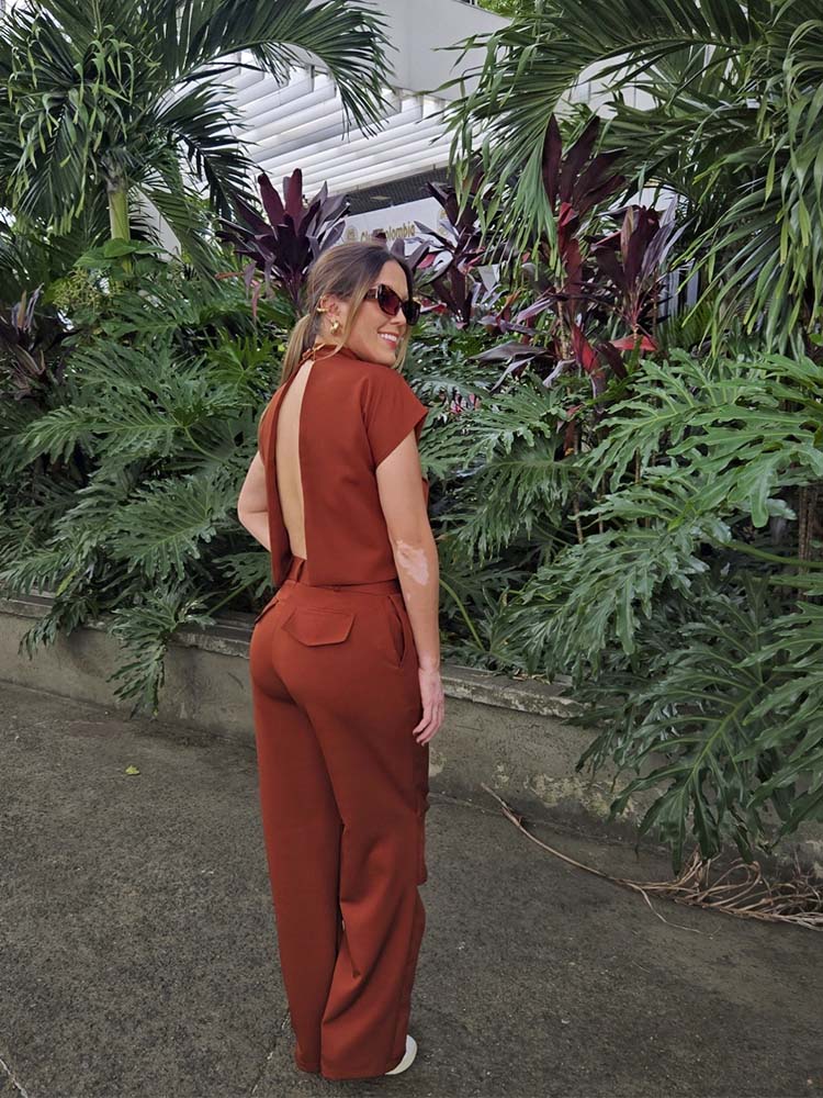 Nuestro set Stephy destaca por su equilibrio entre sofisticación y modernidad. La blusa de cuello alto, con un delicado escote en la espalda, aporta un toque inesperado y femenino. El pantalón largo, con pliegues estratégicos a la altura de las rodillas, agrega estructura y movimiento a una silueta estilizada. Un conjunto pensado para quienes buscan elegancia con un giro contemporáneo.